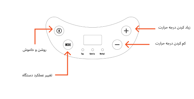 برای استفاده از این عملکرد ابتدا آب را در داخل دستگاه در محدوده کمترین و بیشترین میزان مجاز کتری بریزید سپس دستگاه را روشن نمایید، و از طریق دکمه تغییر حالت(Mode) وضعیت دستگاه را روی کتری برقی(Kettle) قرار دهید.