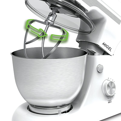 ماشین آشپزخانه میگل مدل GKM 620 با طراحی زیبا و کاربردی جهت تهیه انواع شیرینی و خمیر به صورت کاملا حرفه ای طراحی شده است. 12 سرعت متفاوت قابل تنظیم به همراه چرخش سری ها داخل کاسه و به دور خود همچنین یک کاسه ی پلاستیکی اضافه از ویژگی های ممتاز این محصول به شمارمی آید.